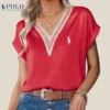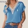 Crafted from soft, breathable fabrics, this Ralph Lauren – Lace Satin V-Neck Blouse is perfect for a casual or elegant look. Whether it’s a casual outing, a dressy evening or a day at work, this Polo RL shirt adapts to any situation. Pair it with jeans for a casual look or with elegant trousers for a more sophisticated style.