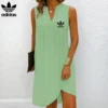 This Adidas – New Elegant Dress combines refined style with a relaxed silhouette, offering a sophisticated look suitable for both casual outings and more polished occasions. Its sleeveless design provides a fresh and airy feel, while the subtle pleated front adds depth and movement to the overall shape.