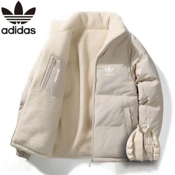 The Adidas – New Reversible Puffer gives you double the style without extra bulk. One side features a clean, insulated puffer shell with iconic Adidas branding. Flip it inside out and you’ve got a soft, sherpa-fleece jacket that feels as good as it looks. One jacket, two moods—wear it how you want.