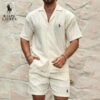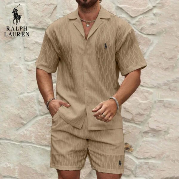 Step into effortless summer style with this Ralph Lauren shirt and shorts set. Featuring a subtly embossed texture, it adds a touch of refined originality while keeping your look modern, relaxed, and effortlessly chic.